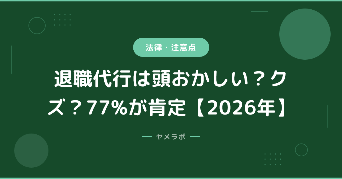 この記事では、「頭おかしい」「クズ」と言われる5つの理由を挙げ、データと法律で全て反論する。さらに、退職代行を使わなかった場合のリスク——バックレ、精神疾患、引き止め地獄——についても解説する。